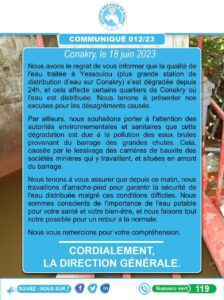 • Conakry :Société des Eaux de Guinée (SEG), la station principale dégradé. (communiqué )
