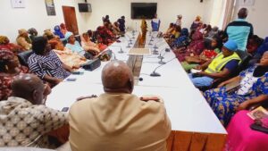 Ce vendredi 13 décembre, une cinquantaine de femmes ont investi la salle de conférence de la préfecture pour rencontrer le Préfet, Colonel Alseny Camara, entouré de son Secrétaire Général chargé des affaires administratives et de son attaché administratif.