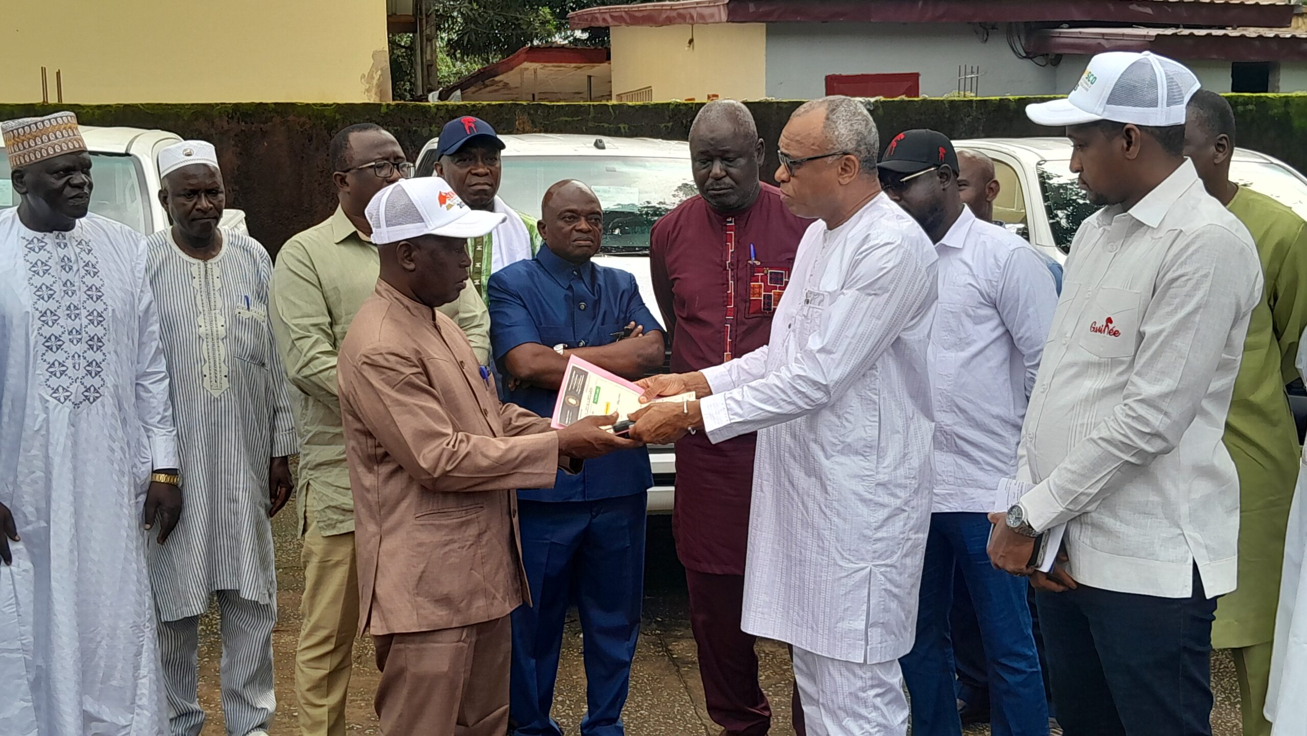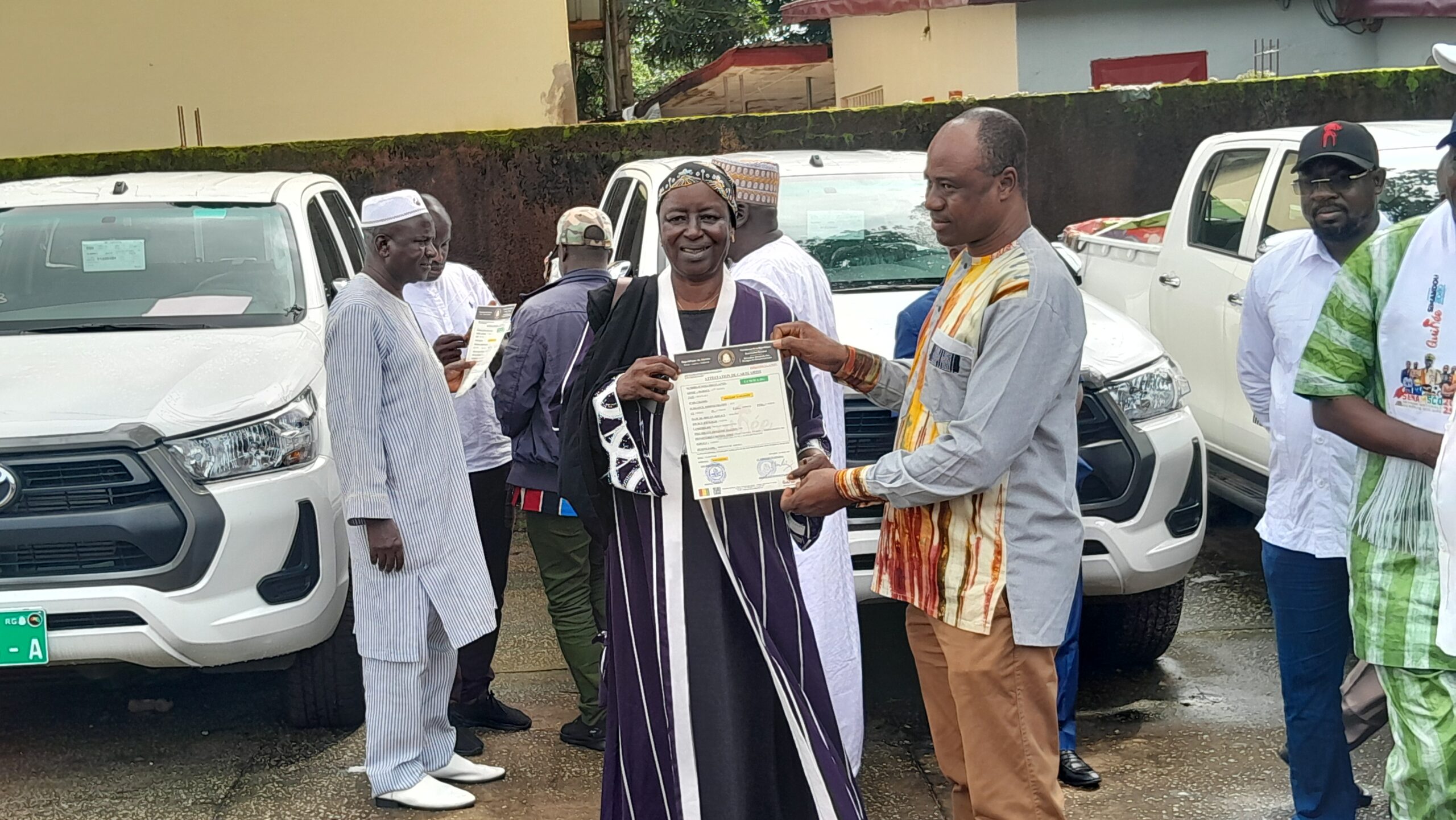 La remise symbolique a débuté par l’inspecteur régional de l’éducation de N’Zérékoré, qui a reçu les clés et les documents de son véhicule des mains du ministre.